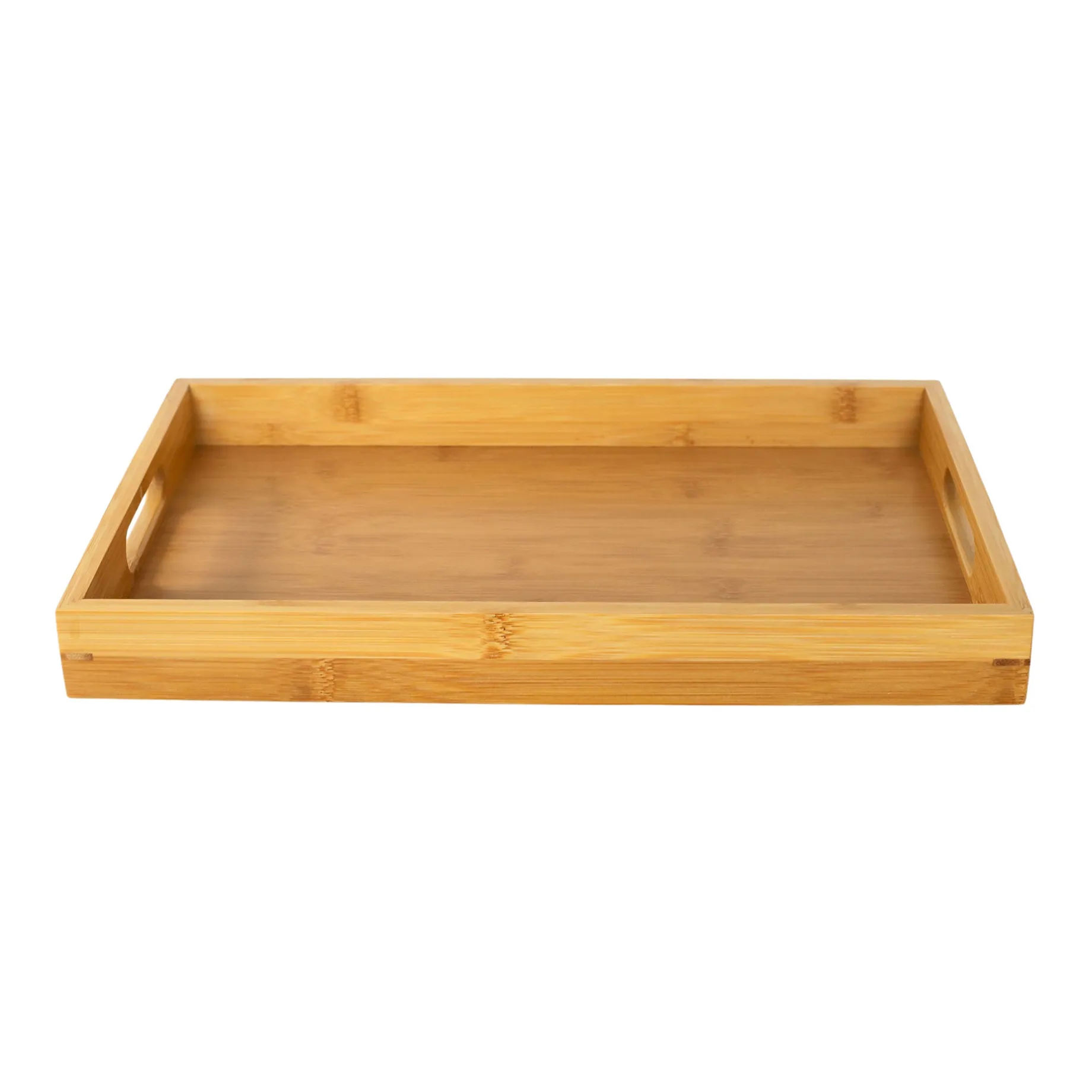 Experience the natural elegance of our Eco-Friendly Bamboo Serving Tray, perfect for starting your day with breakfast in bed or hosting a delightful gathering. Crafted from solid bamboo, a highly renewable resource, this tray features a sturdy construction with a smooth solid base and comfortable cut-out handles for easy transportation. Measuring 15″ L x 9.75″ W x 1.50″ H, it offers ample space for serving drinks, meals, or using as a charming piece of your home decor. Its natural aesthetic brings a touch of warmth and sustainability to any setting.